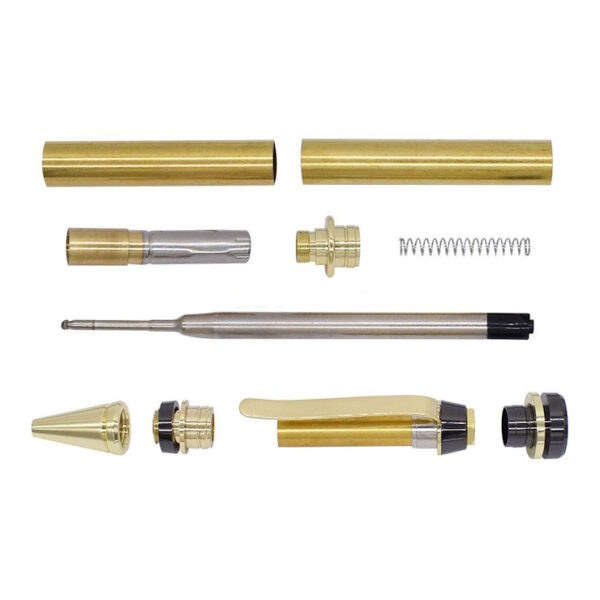 Featuring a substantial cigar-style profile and luxurious metal finishes, this pen kit is a favourite among pen turners who want to create standout, high-end pens. The combination of gold and gun metal components adds a striking contrast that pairs beautifully with exotic woods, acrylics, and resin blanks.