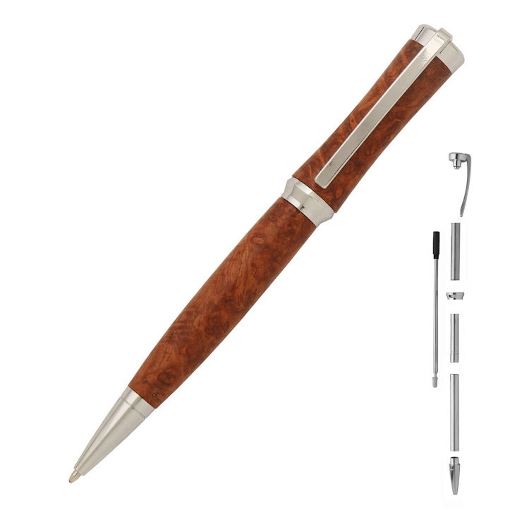 A study in contemporary styling, the Concava showcases an exciting new concave design opportunity on the upper barrel. You’ll appreciate the creativity in turning a sophisticated and original silhouette while your recipient will appreciate the comfortable feel and inspired design. Features a adjustable spring clip and is easy to make.