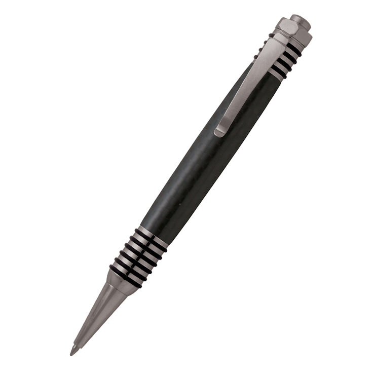 This impressively masculine, industrially designed pen will impress any gift recipient. The ten O-rings compliment the industrial look while providing an easy to hold, comfortable writing experience. Includes the same super quiet, smooth action click mechanism used in our Vertex pen kits.